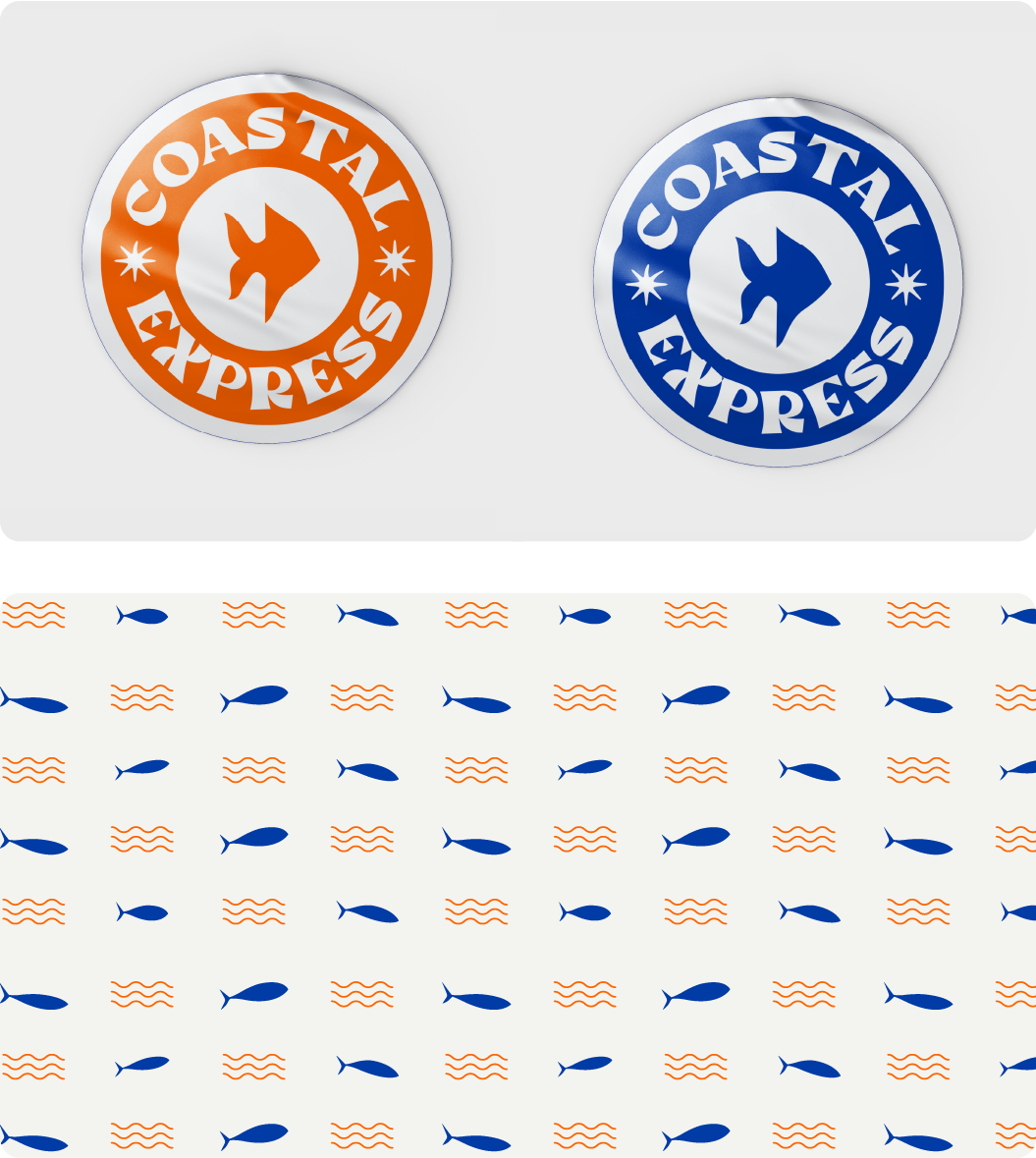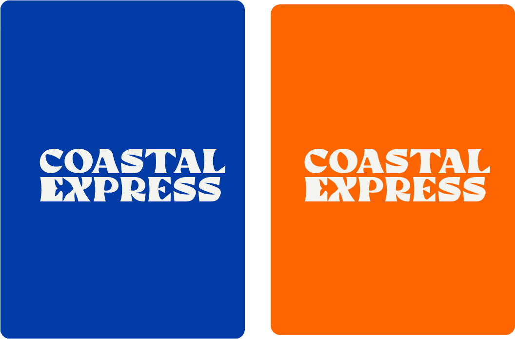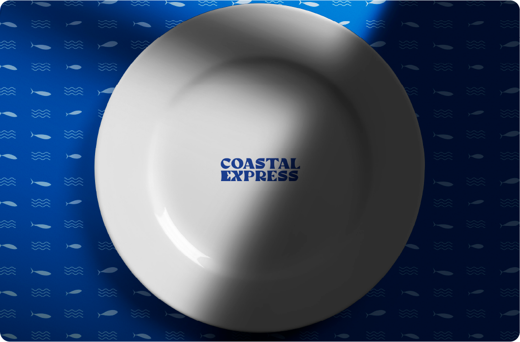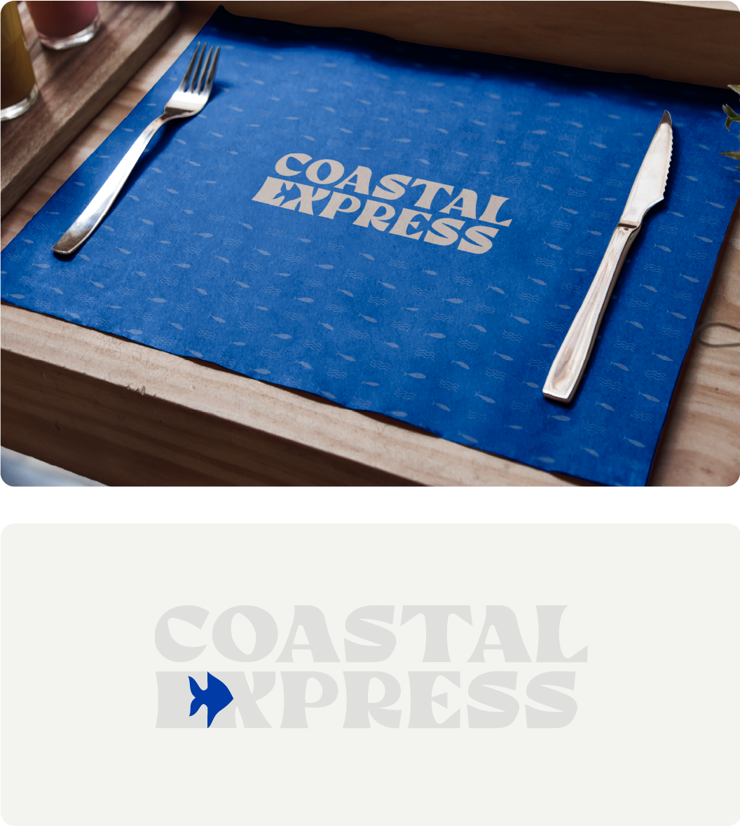 The logo is a wordmark with ‘Coastal’ on top and ‘Express’ below, set in a thick, wavy font that hints at ocean waves. To add a fun touch, we hid a fish in the negative space between the E and X, a little detail that ties it all back to seafood. It’s simple, playful, and easy to remember, just like the experience you get at Coastal Express.