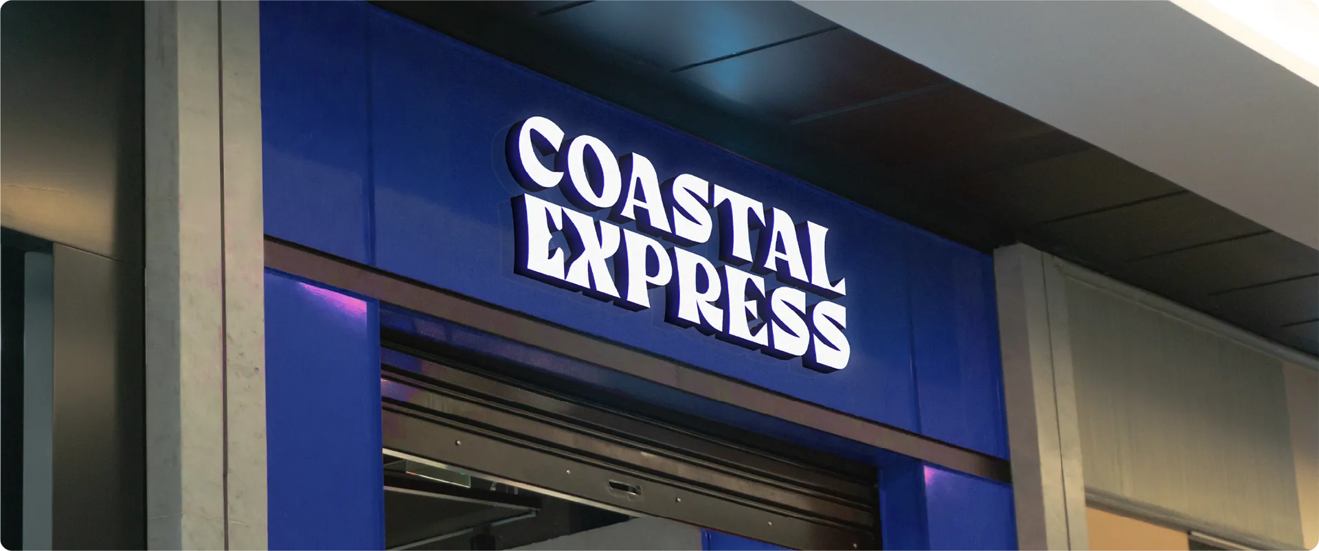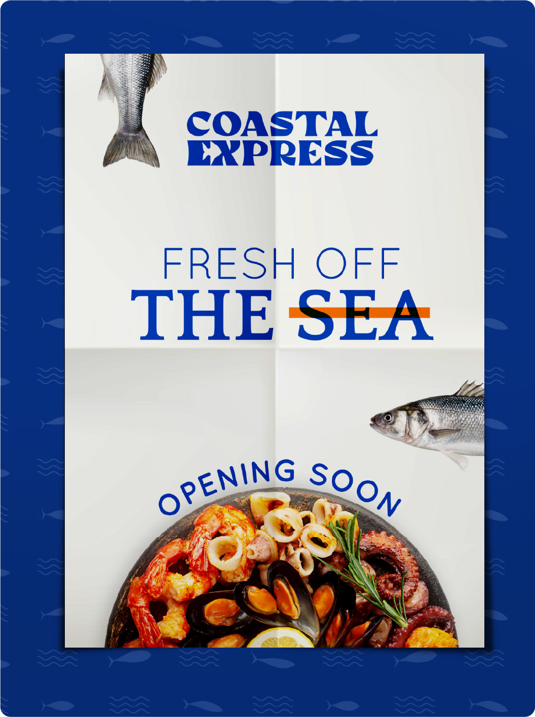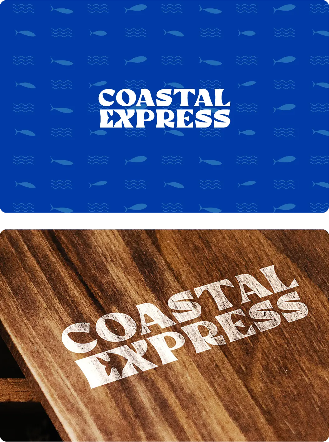 The logo is a wordmark with ‘Coastal’ on top and ‘Express’ below, set in a thick, wavy font that hints at ocean waves. To add a fun touch, we hid a fish in the negative space between the E and X, a little detail that ties it all back to seafood. It’s simple, playful, and easy to remember, just like the experience you get at Coastal Express.